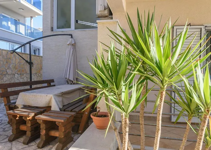 Apartament posiada dostęp do wyposażonego aneksu kuchennego z piekarnikiem i zmywarką do naczyń. W odległości kilku przecznic od przystanku autobusowego Skola II. Pokoje dysponują tarasem z widokiem na morze.